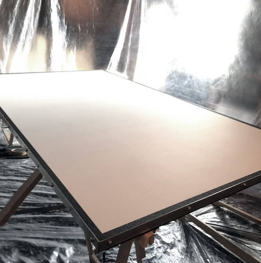 Indeed, its opacity and exceptional covering power offer an impeccable rendering on the painted screen area. After two or three coats applied to the prepared surface, we obtain an ultra matte screen, an impeccable chromatic fidelity, without image distortion or hotspot effect!
